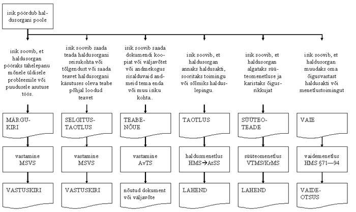 - Taotlus on pöördumine, mis esitatakse haldusmenetluse algatamiseks või selle käigus (HMS § 14 lg 1). Taotluse esitamisega realiseerib isik oma subjektiivseid õigusi või realiseerib õiguskaitset (vt RVastS § 4 ja 6 jj).