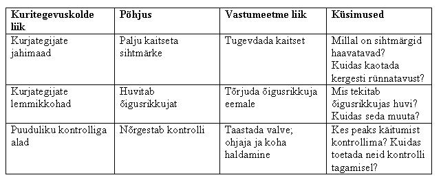 Tabel 2. Kuritegevuskollete nõrgestamine
